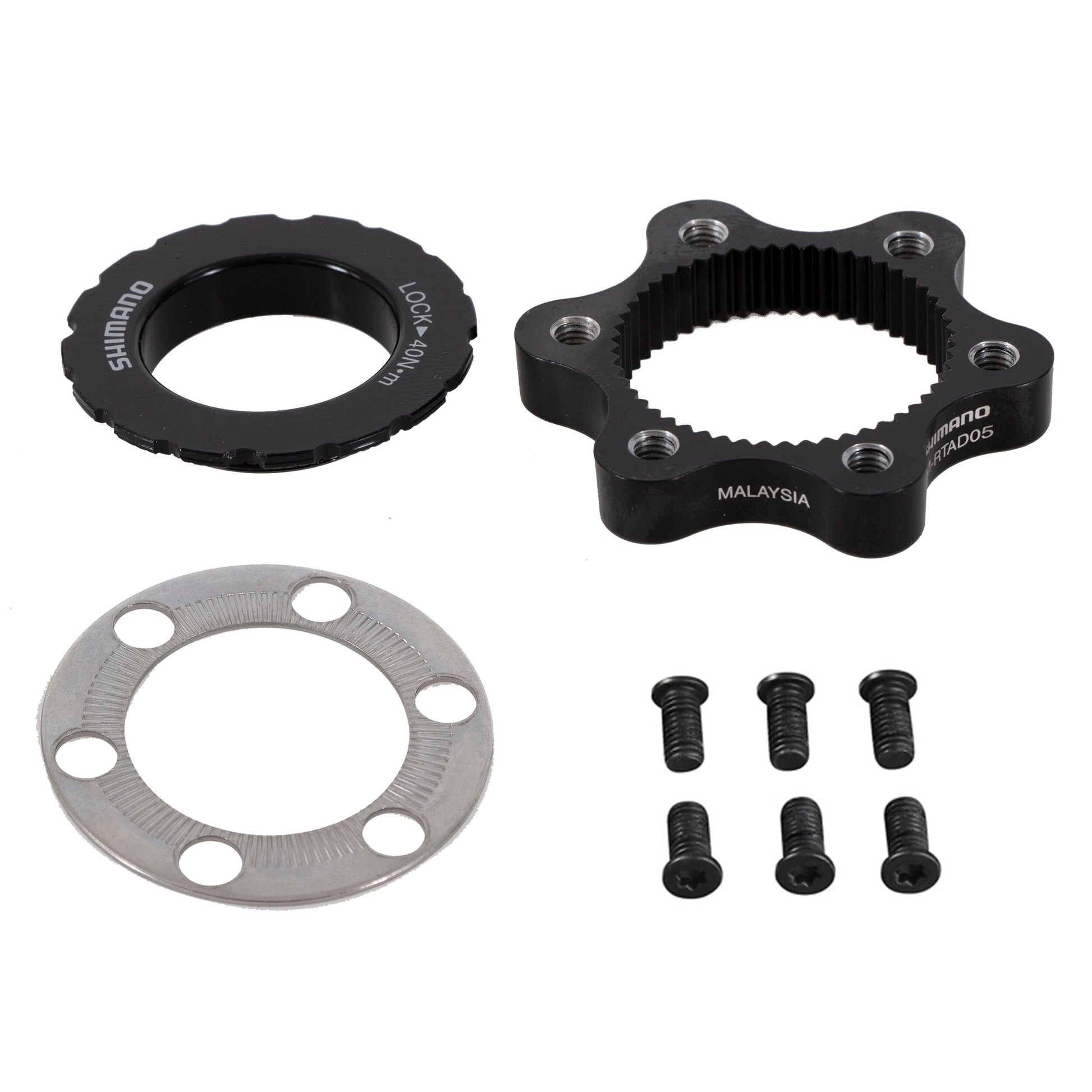 Shimano 6-Hole Center Lock Adapter. Allows you to mount 6-hole discs on Center lock wheels.