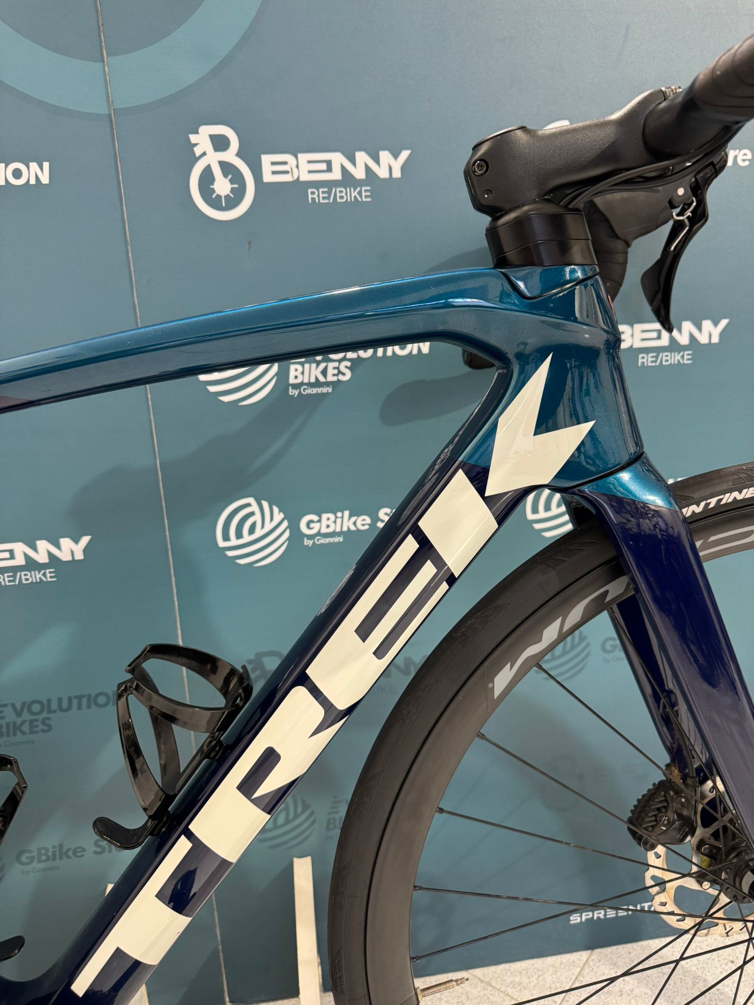 Émonda SL full carbon, tapered carbon steerer, internal brake routing, flat mount disc, 12x100mm thru axle